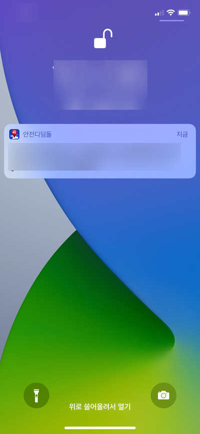 폰이 꺼져 있을 때, 재난문자는 위와 같이 기본 알림 형태와 거의 동일합니다. (좌측)