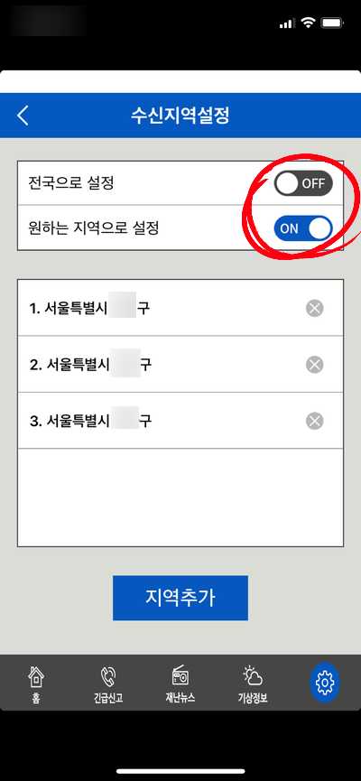 이제는 모든 재난문자가 수신이 되지 않습니다. 재난문자를 더 이상 받고 싶지 않으면 여기까지만 하면 됩니다.