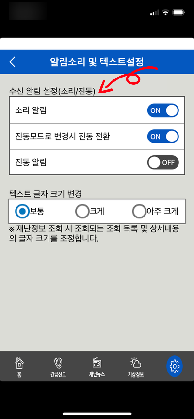 알림수신이 컨트롤되지 않고 다소 불편했던 재난문자도 본인이 원하는 형태대로 수신받을 수 있습니다.
