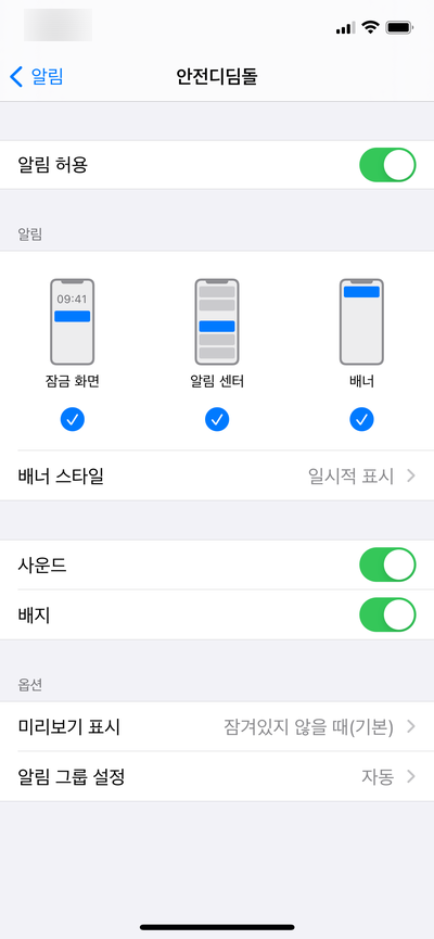 아이폰 기본설정의 알림에서 해당 앱의 알림방식을 원하는 형태로 설정해 주면 됩니다.