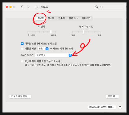 아래와 같이 "시스템환경설정"-"키보드"로 들어가서,