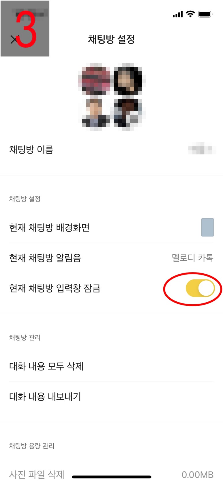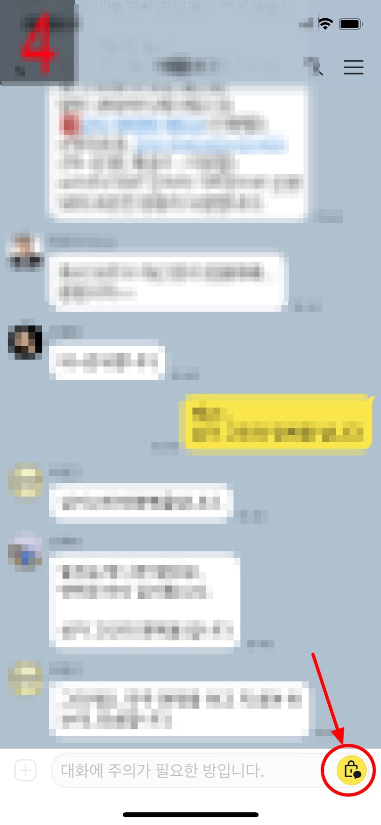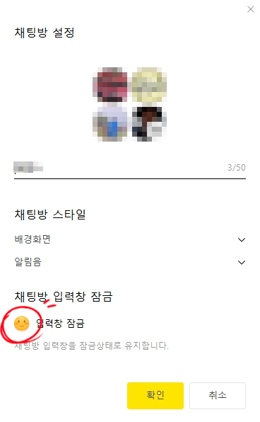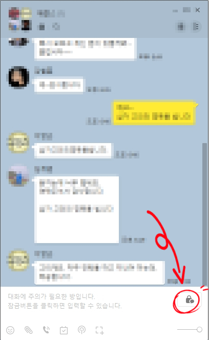 카톡에서 제공하는 "채팅방 입력창 잠금"기능을 설정하여 사용해 보는 것이 더 좋지 않을까 하여 공유해 봅니다.