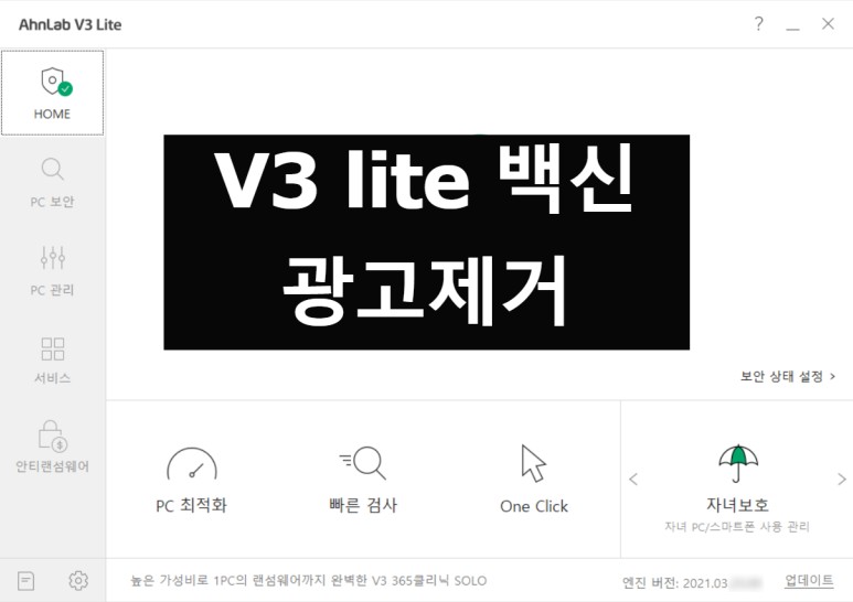 여러 다양한 유료 백신도 있으나, 많은 분들이 아직은 안랩에서 제공하는 무료 백신 "V3 Lite" 을 사용하고 있는 것 같습니다.