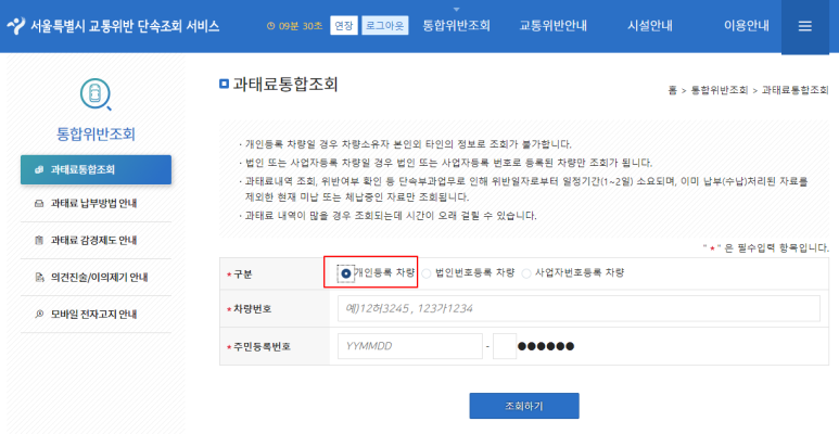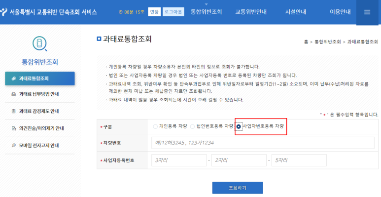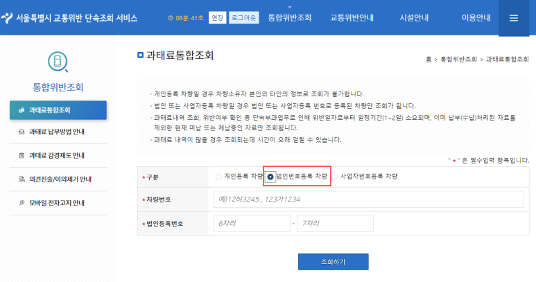 -녹색교통지역 과태료 통합 조회 서비스 제공