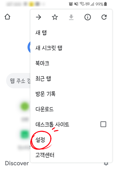 핸드폰의 기본 세팅에서