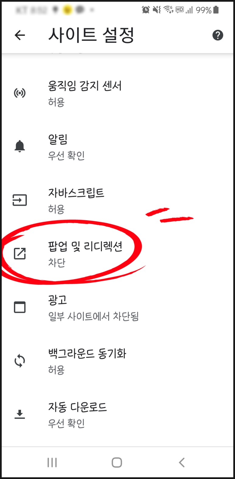 "팝업차단"을 원래대로