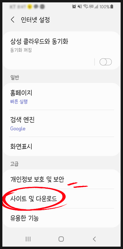 기본 브라우저인 "삼성인터넷",