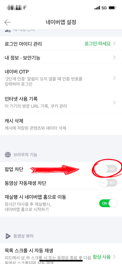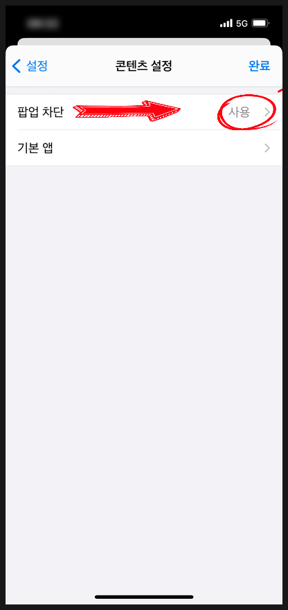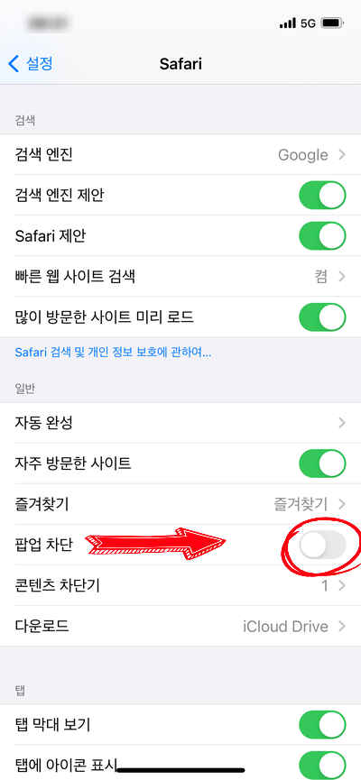 "팝업차단"을 좌측으로 OFF하면 됨.