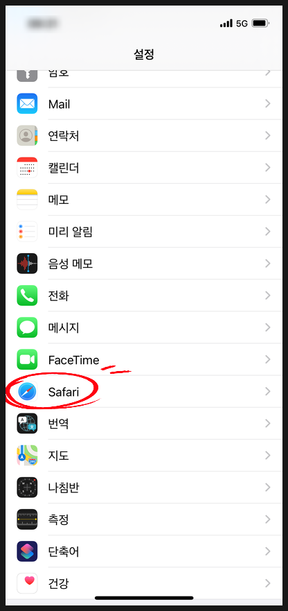 "설정"-"사파리"를 눌러서,