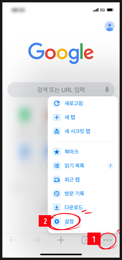우측하단의 점3개를 누른후 "설정"(좌측)