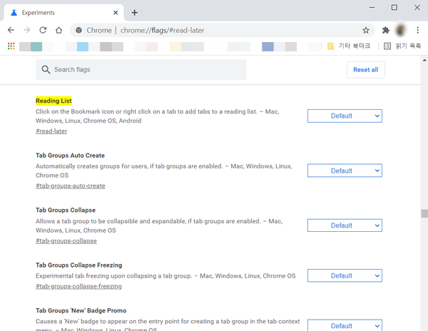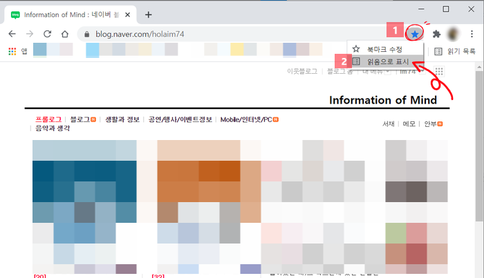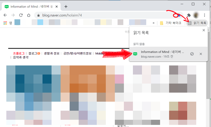 "읽기 목록"은 북마크 기능과 비슷한 것으로