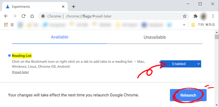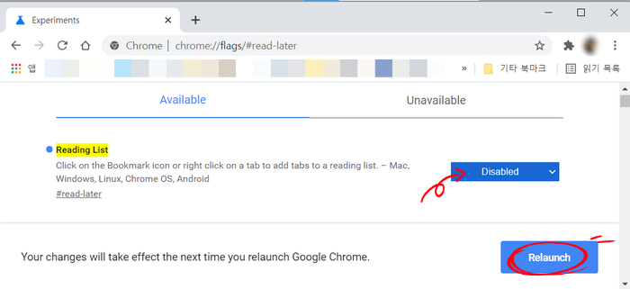 "Enabled"로 바꾼 후 "Relaunch"를 누릅니다.