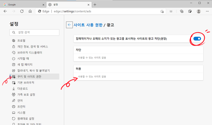 MS Edge에 의한 팝업광고 차단(제거)하기