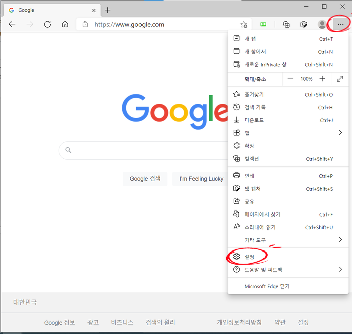 우측 "점3개" 클릭 >>"설정" 클릭