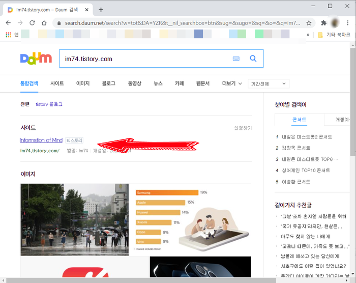 티스토리가 "다음" 검색엔진에서