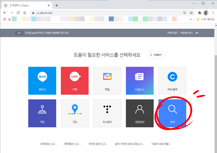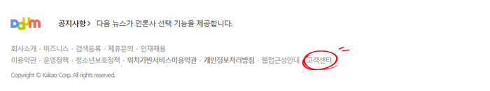 1."다음" 메인페이지의 "고객센터" 클릭
