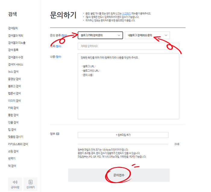 6. 문의하기에서 아래 내용 참조하여