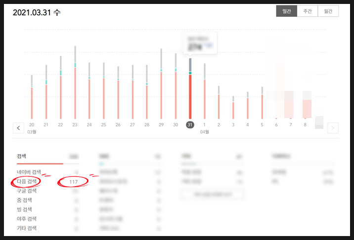 위 3/31에 다음검색 조회수가 나오는 데,