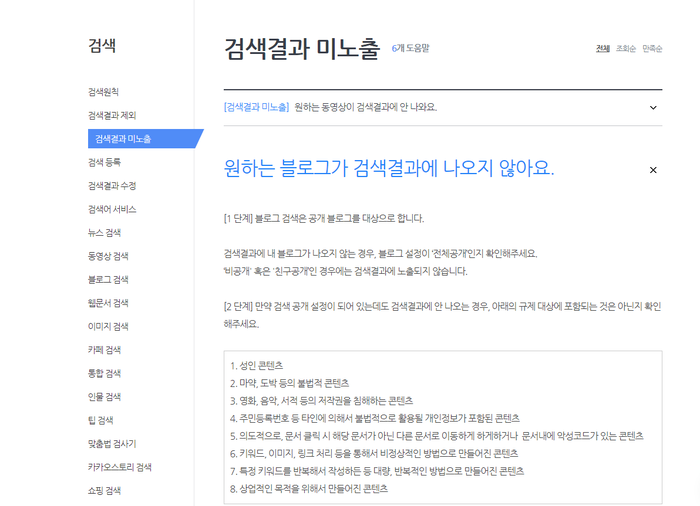 블로그가 검색에서 누락되고 있는 것입니다.