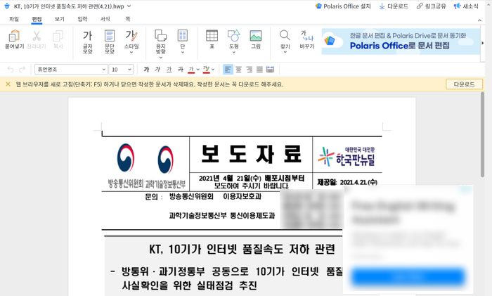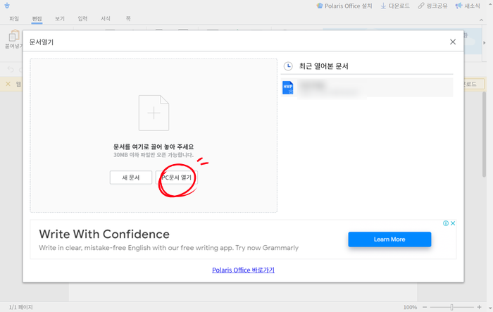 폴라리스오피스 웹 한글 - 브라우저에서 무료로 사용하는 한글