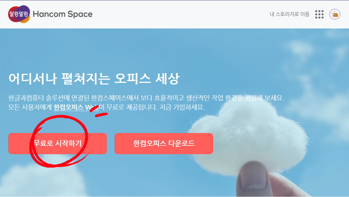 "말랑말랑플랫폼"사이트의 "한컴스페이스"에서