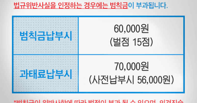 신규 과태료 신설 소식에 앞서 헷갈릴 수 있는 범칙금과의 차이점을 간략히 설명해 드릴게요. 범칙금은 형법 상 범죄행위에 대한 행정처분으로서, 교통 단속 경찰에 의해 적발되었을 때 운전자에게 직접 부과됩니다.