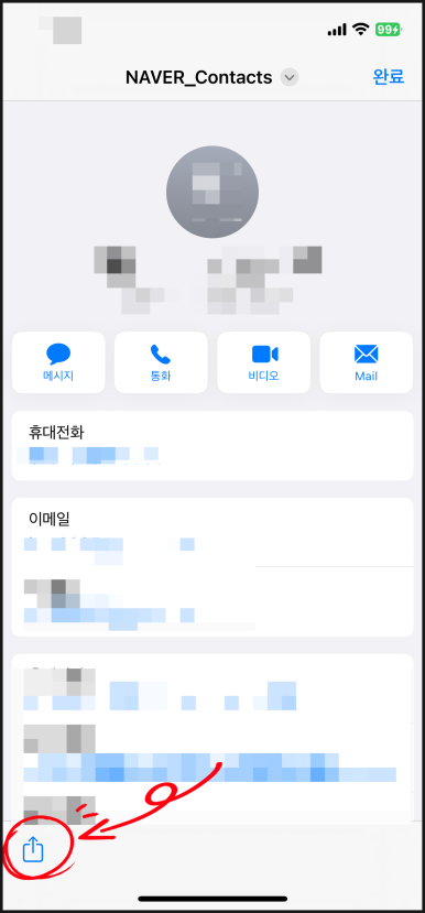 대표 전화번호 하나만 보여주는 데, 좌측하단의 "공유"버튼을 눌러서(좌측),