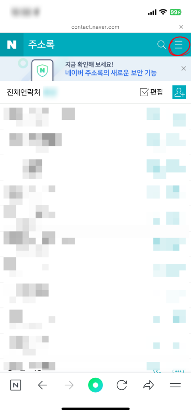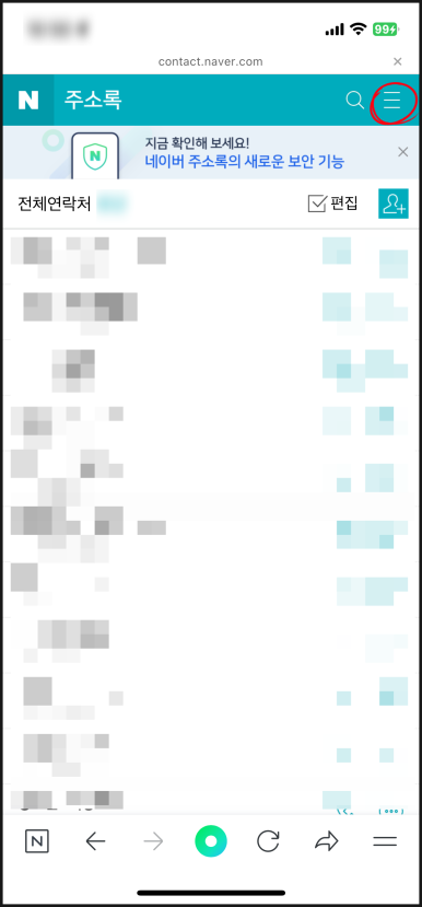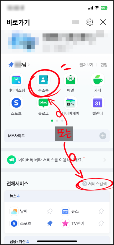 위와 동일하게 네이버앱을 열어 "주소록"으로 들어갑니다.