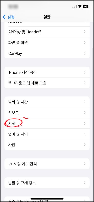 아이폰 "설정"-"일반"-"서체"로 들어가면,