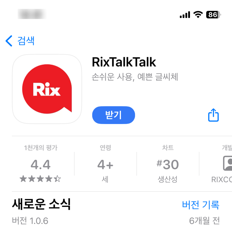 앱스토어에서 "Rix톡톡"검색하여 설치합니다.