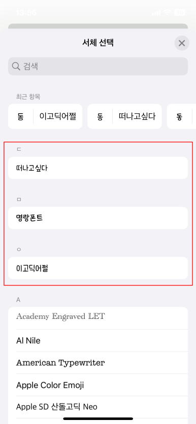 글꼴 제목 및 모양을 보고 찾습니다.(좌측)