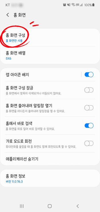 홈화면과 앱스화면을 분리해 놓는 게 좋으며,