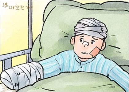 "환자분은 교통사고를 당해서 큰 수술을 받으셨습니다.