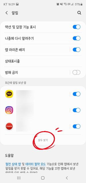 위처럼 "알림"을 눌러 "모두 보기"를 누른다.