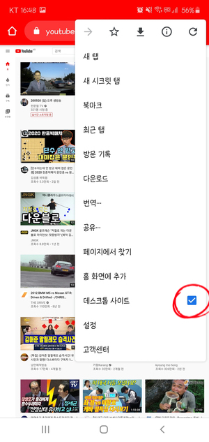 "데스크톱 사이트"를 체크합니다.(우측)