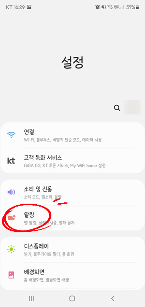 홈화면의 상단을 아래로 내려서,