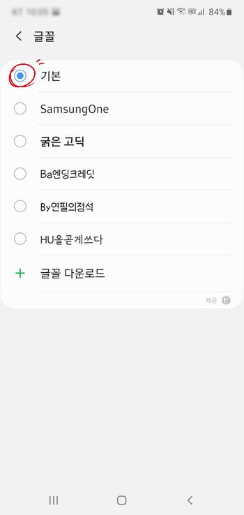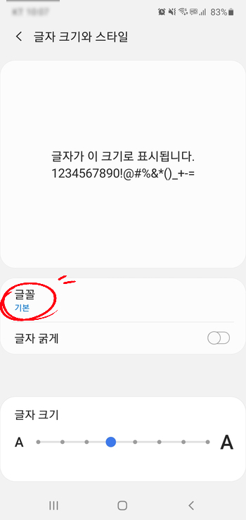 "기본"글꼴로 변경 및 폰 홈화면으로 나왔다가,