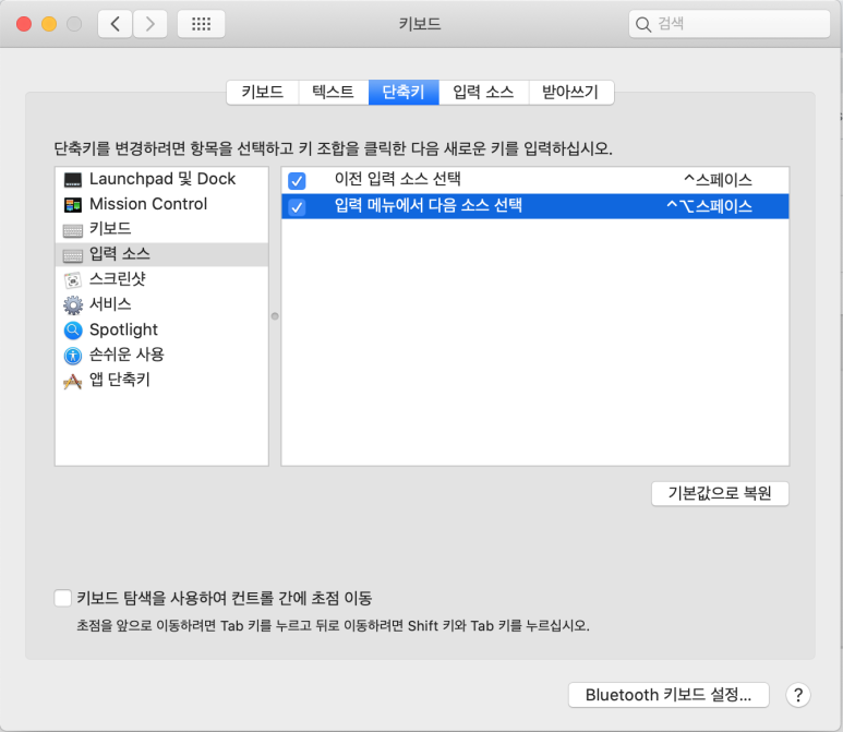 (여기서는 "^⌥스페이스 부분"을 더블클릭)