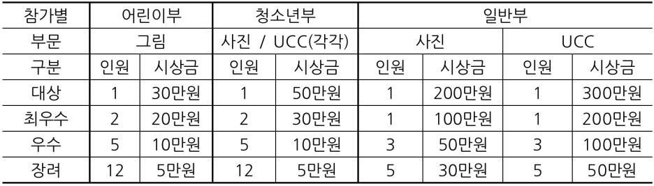 ※ 어린이, 청소년부는 시상금 상당의 문화상품권 지급