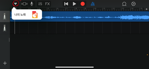상단의 "역삼각형"모양을 터치한 후, 나오는 "나의노래"를 터치합니다.