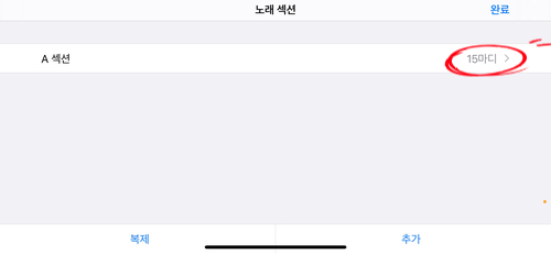 9. A섹션을 "15마디" 정도로 조정해주고, 상단 "완료"를 누릅니다.