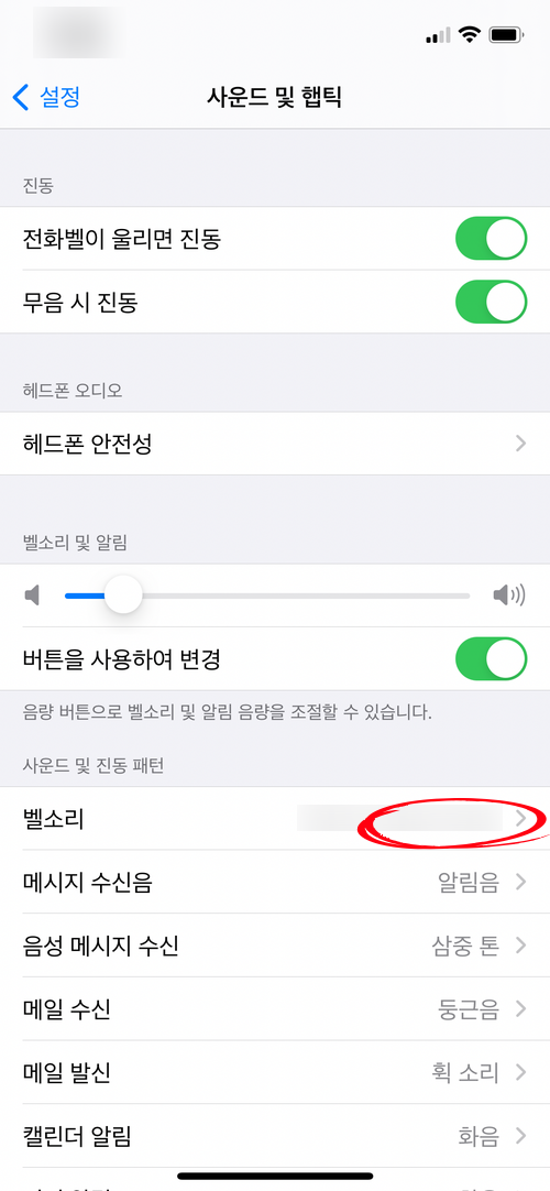 "설정"-"사운드및 햅틱"-"벨소리"로 가서
