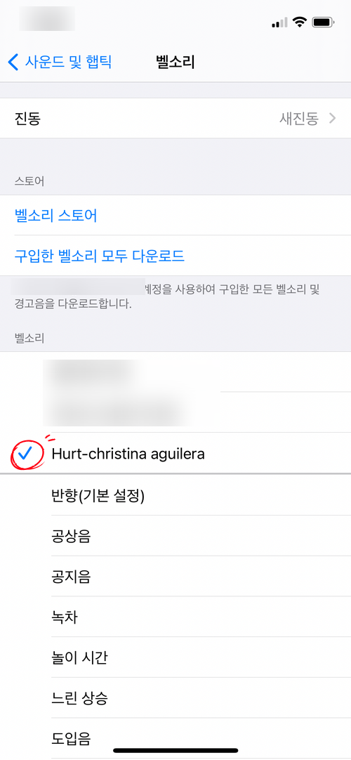 제일 상단에 전송한 벨소리를 적용하면 끝입니다.