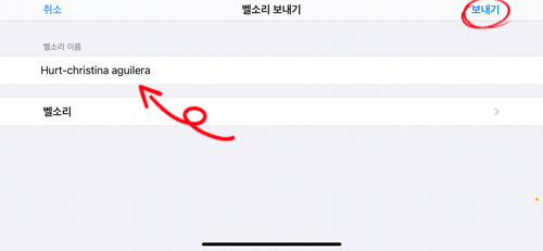 17. 원하는 벨소리 이름을 입력하시고, 우측상단의 "보내기"를 누릅니다.