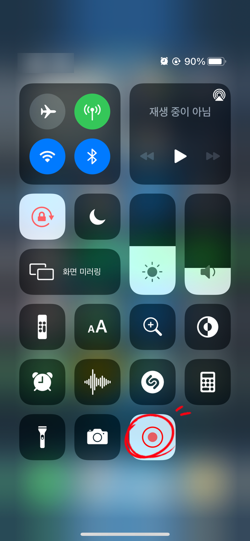 제어센터에서 "화면기록"을 누르면, 3초 후 우측과 같이 녹화를 시작합니다.