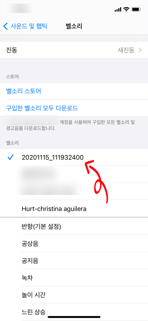 새로 생성된 벨소리가 상단에 하나 더 생겨 있습니다.