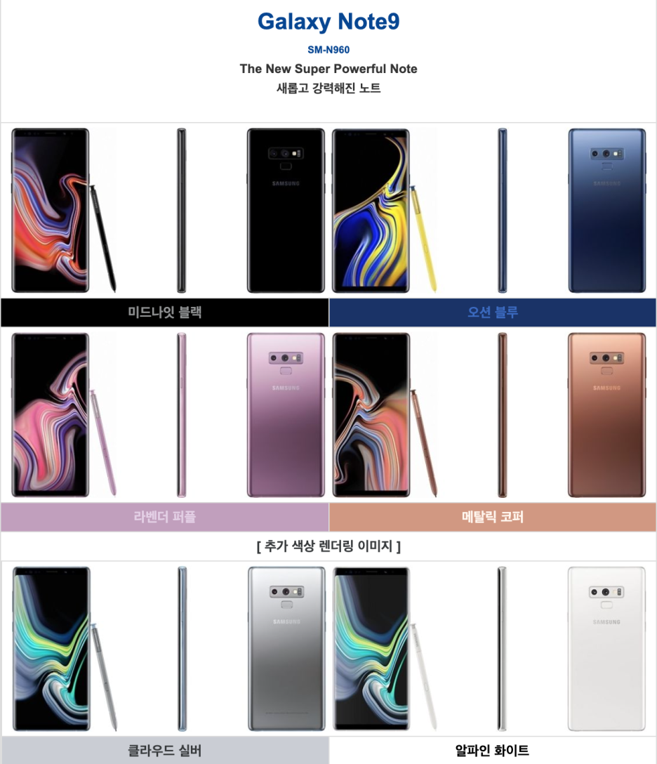 노트9 | SM-N960 | 6.4인치 18.5:9비율 2960 x 1440 Infinity Display (516 ppi) | 76.4 x 161.9 x 8.6 | 201 | 내장형 | [기본] [망원] OIS 지원 1,200만 | 800만 AF | 18년 08.09 |
