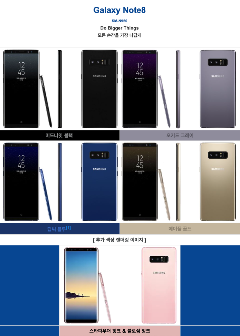 노트8 | SM-N950 | 6.3인치 18.5:9비율 2960 x 1440 Infinity Display (521 ppi) | 74.8 x 162.5 x 8.6 | 195 | 내장형 | [기본] [망원] OIS지원 1,200만 | 800만 AF | 17년 08.23 |