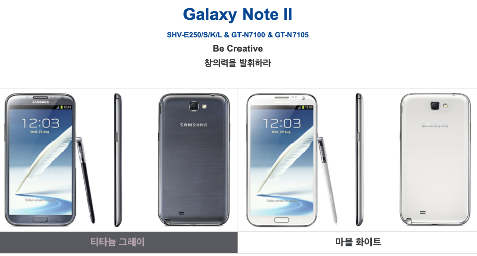 노트2 | SHV-E250 | 5.55인치 16:9 비율 HD(1280 x 720) | 80.5 x 151.1 x 9.4 | 183 | Li-Ion 착탈식 | 800만 | 190만 | 12년 8월 |