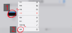 (5)다음, "나의 노래"를 꾹 누르고 있으면 나오는 팝업에서 "공유"를 눌러(좌측), "벨소리"를 누릅니다.(우측)